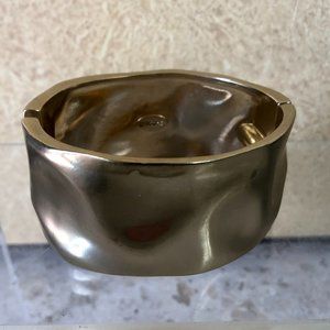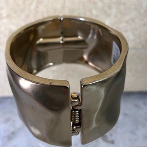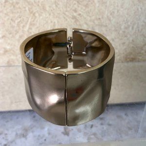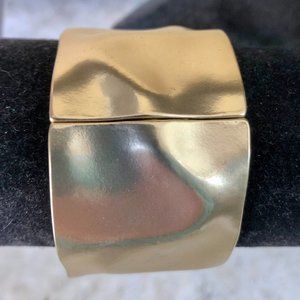 🆕 CHICO’S ‘CIANA' WIDE HAMMERD GOLD TONE MOLTEN HINGED CUFF BANGLE BRACELET NWT