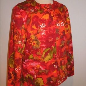 CHICO'S COTTON/SPANDEX ORANGE /GREEN MULTI JACKET Blazer Size 2 (L12)