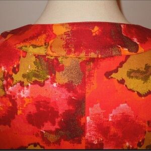 Vibrant floral top in red and orange hues. Perfect for adding a pop of color to your wardrobe.