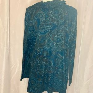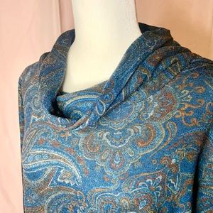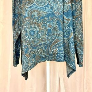 CHICOāS COWL NECK KERCHIEF HIGH LOW HEM LONG SLEEVEā PAISLEY KNIT TOP BB153
