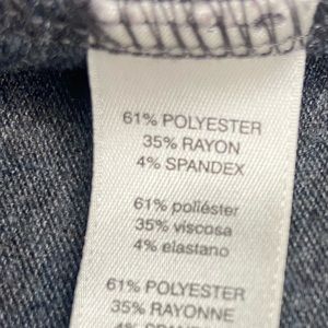 61% polyester, 35% rayon, 4% spandex