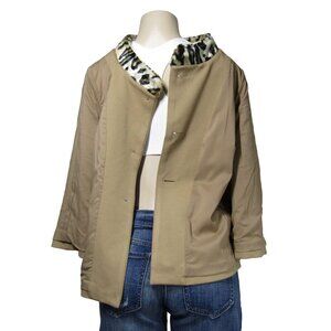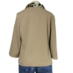CHICOS Camel Tan LEOPARD Animal Print Faux fur Collar Retro Swing Jacket 1 M 8