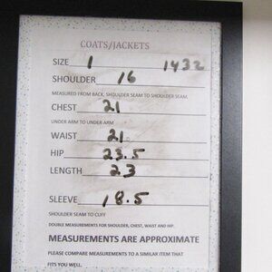 PLEASE SEE PICTURES FOR MEASUREMENTS. Measurements are of the garment laid flat. Measurements of shoulder, chest/bust, waist and hip are to be doubled.