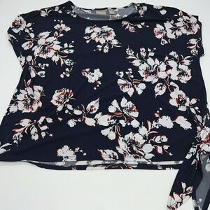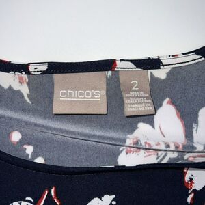 CHICO'S Cap Sleeve Stretchy Floral Side-Tie Top 2/L Navy Red.
