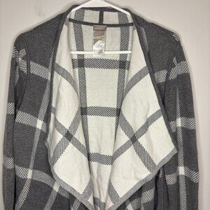 CHICO'S Cardigan Women M (1) Grey White Plaid Open Front Stretch