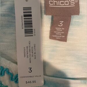 CHICO'S Chevy Tie Dye Scoop Short Sleeve Knit Tee Top NWT Size 3 (16/18-XL)