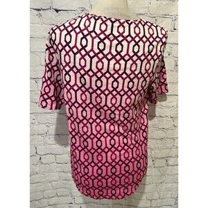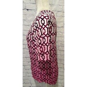 CHICOS Chico’s Ombre Hexagon Elbow Sleeve Tee Scoop Neck Pink Cotton Modal 0/S/4