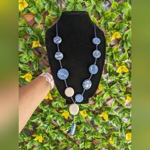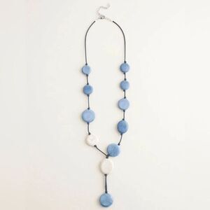 CHICO'S Chunky Statement Ceramic Blue & White Discs Y-NECKLACE