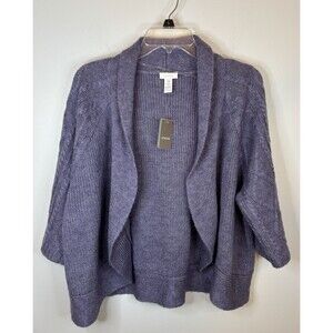 CHICOS Cora Cable Cocoon Mohair Blend Shrug Cardigan Sweater 3/XL/16 Purple Plum