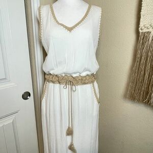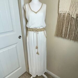 CHICO'S Crochet Detail Maxi Dress Grecian Travel Resortwear Light Flowy
