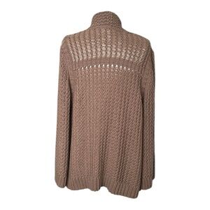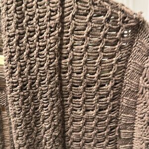 CHICO’S Crochet Open Cardigan Sweater Brown Neutral Bohemian Earthy Size Medium