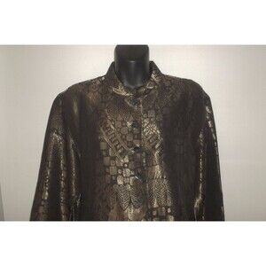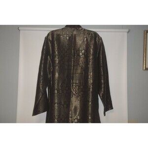 CHICO'S DESIGN Black Gold Floral Print Silk Blend Button Down Long Shirt Sz 2(M)