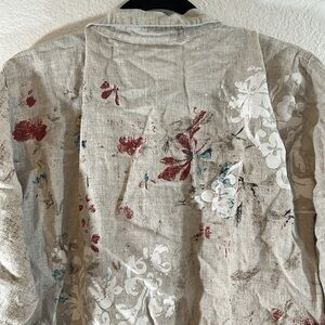 CHICO’S DESIGN Linen taupe tan 1 French country blouse tunic Size 3 (XL/16)