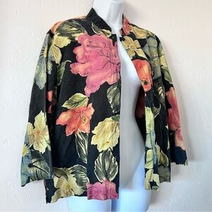 CHICOS DESIGN Vintage Floral Button Down Shirt Jacket Shaket Size 2 / Medium