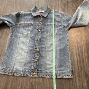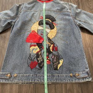 CHICO'S Design Womens Size 2 Embellished Geisha Beaded Embroidered Denim Jacket.