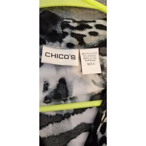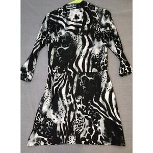CHICO'S Dress Animal Print Faux Wrap Jersey Knit Vneck Black White Sz 0 Small 4. Polyester Spandex Blend. Front pockets. Excellent used condition, no stains or holes. Smoke-free home. Check out my other items. I will combine shipping