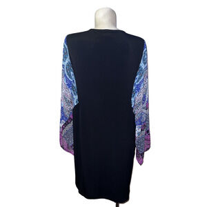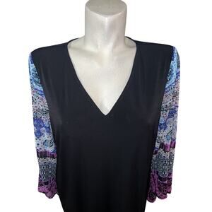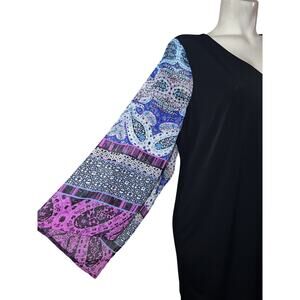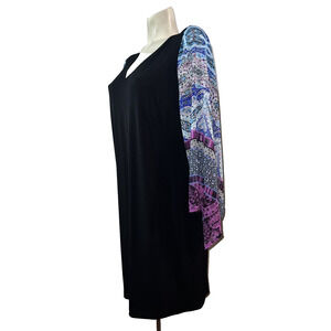 CHICO'S Dress Size L (2) Solid V-neck Black w/Paisley Print Sheer Sleeve Tunic
