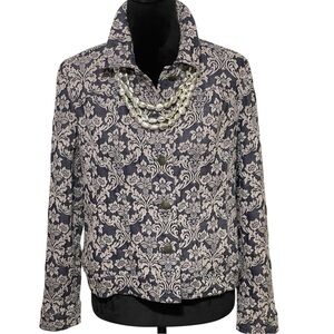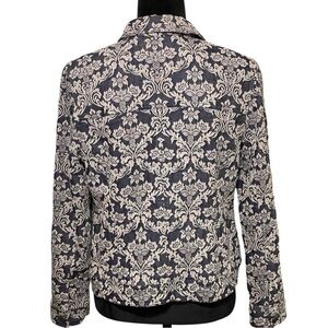 CHICOS EMBROIDERED INDIGO PAISLEY PRINT BLAZER SZ SM