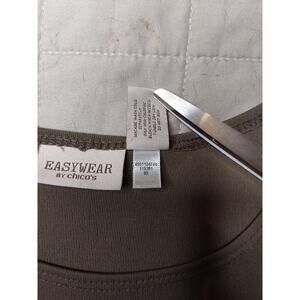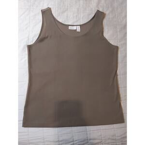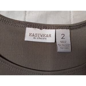 Chico's Easywear tank top in size 2 (equivalent to US 12/14). Versatile taupe brown color in signature Easywear fabric that's soft, stretchy, and wrinkle-resistant. Classic scoop neckline with sleeveless design. Perfect basic for layering or travel wear.