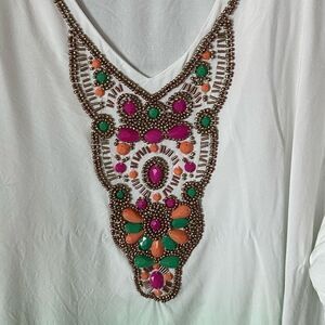 CHICO'S Embellished Kurta Tunic Top Womens 2 Emerald Ombre Bohemian Resortwear