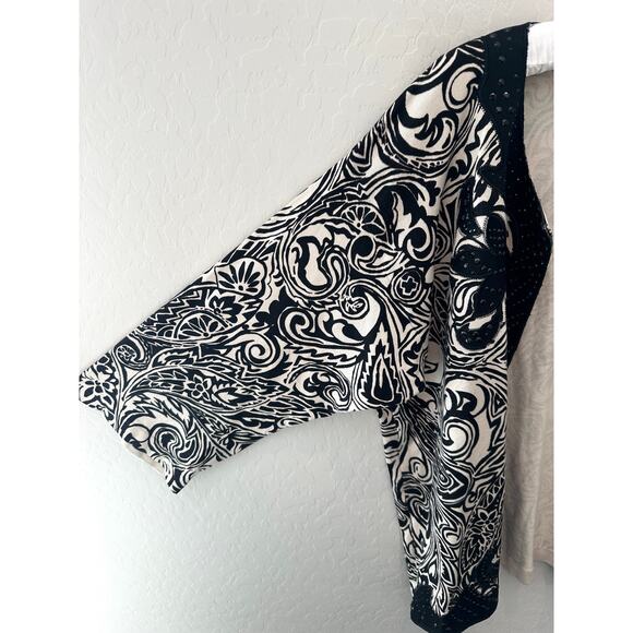 CHICO’S | Embellished Open Front Cardigan Black Paisley Silk Blend | Size 3 XL