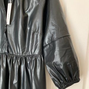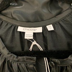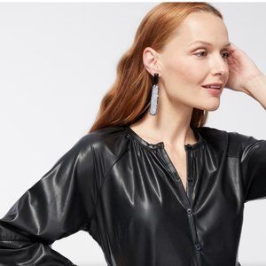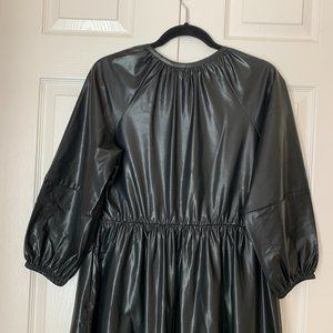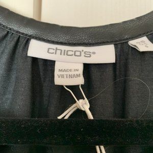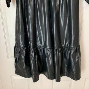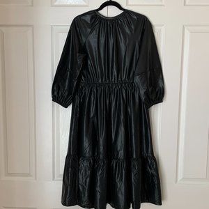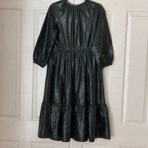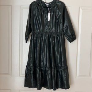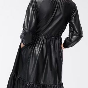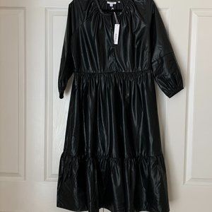 CHICO’S FAUX LEATHER MIDI TIERED DRESS WITH SLEEVES