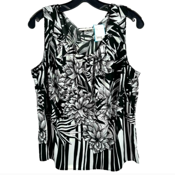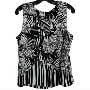 CHICO'S FLORAL B&W TANK TOP BLOUSE SIZE 1