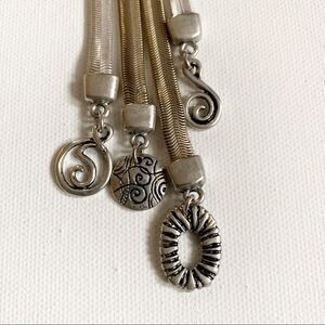 CHICO'S Flat Snake Chain Y Necklace. Silver tone. Small rhinestone details. Charms. Lobster clasp closure. Comes with dust/gift bag.