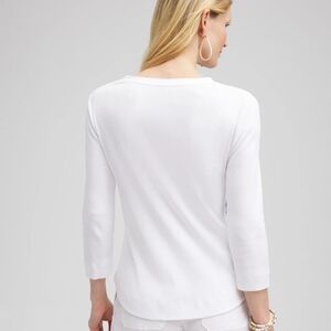 CHICOS Floral Everyday V Neck 3/4 Sleeve Pima Cotton White Tee sz L