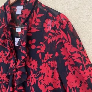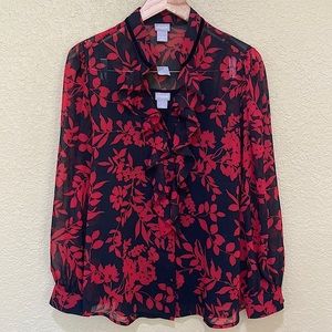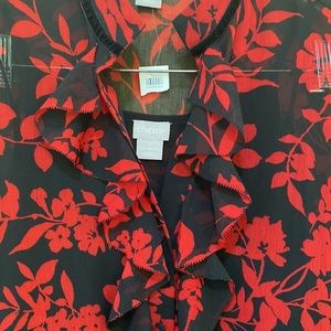 CHICO'S Floral Print Button Down Top Medium NWT
