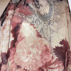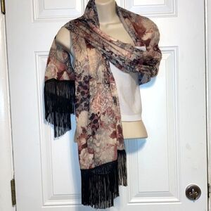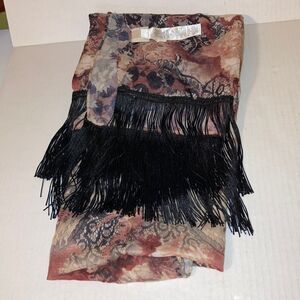 CHICOS Floral and Lace Print Scarf with Black Fringe Womens 20 x 70 inches