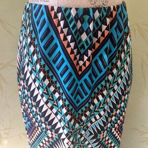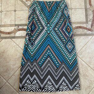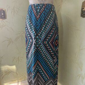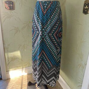 CHICO'S GEOMETRIC MOTIF MAXI SKIRT:PREOWNED EXCELLENT CONDITION