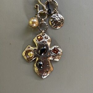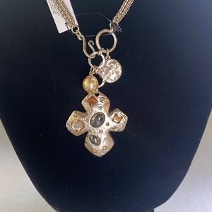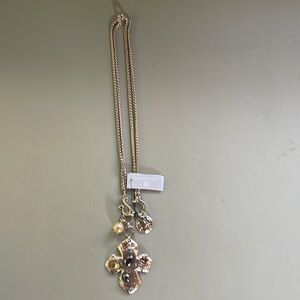 CHICOS Gold Tone Convertible Medallion Necklace, with Pendant and Charms. NWT