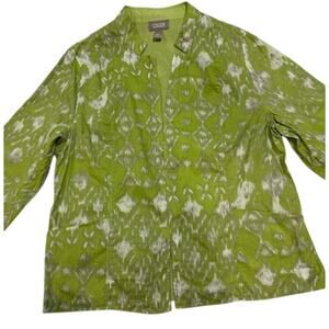 CHICO'S Green White Open Cardigan Shacket Pockets Ikat Women's Size 3 LARGE