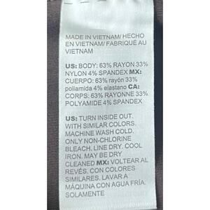 63% Rayon, 33% Nylon, 4% Spandex; Recommended: Machine wash cold, line dry