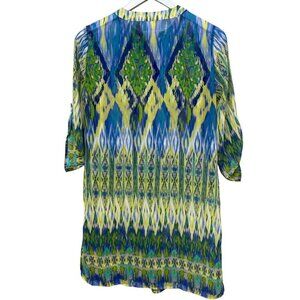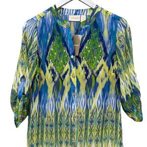 CHICO'S Ikat Breeze Top Small Petite (Chicos0) Sheer Tunic Boho Green Print NWT