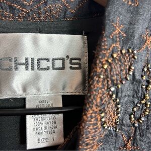 CHICOS JACKET WOMENS 1 BROWN SILK BEADED MEBROIDERED BUTTON FRONT TOP MEDIUM