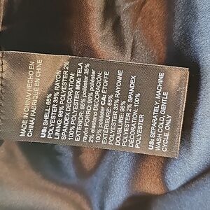 55% polyester, 45% rayon. Machine wash.
