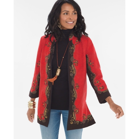 This jacket lavishes you in luxe style. Specially designed for our 35th anniversary, the duster silhouette is elevated with swoon-worthy beadwork and finished in a soft, richly hued fabric. This event-worthy design is a definite collector's piece.