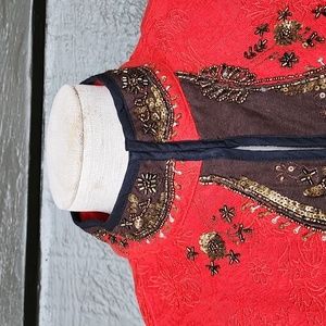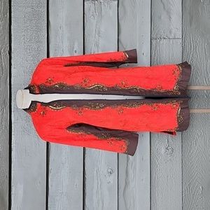 Heritage Beaded Jacquard Longline Coat sz L 12 Women's