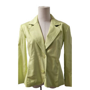 CHICOS Jacket Womens Size 1 Medium Chartreuse Stretch Cotton Lined Tailored