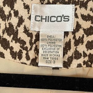CHICO’S Jacket XL Brown Leopard Print Beaded Sequins Lined Long Sleeve Size 3