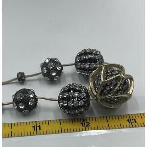 CHICO'S Julia Silver Gold Tone Rhinestone Adorned Fireballs Black Ball Necklace