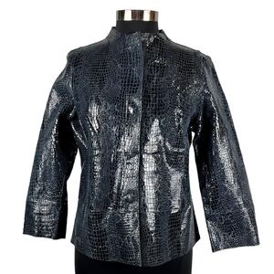 CHICOS KIMBERLY REVERSIBLE STRIKING ANIMAL MIDNIGHT LAVA EMBOSSED LEATHER JACKET