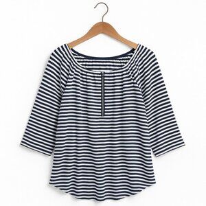 CHICO'S Knit Kit Stripe Off-Shoulder 3/4 Sleeve Top