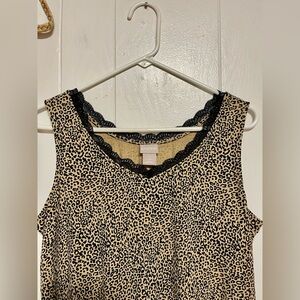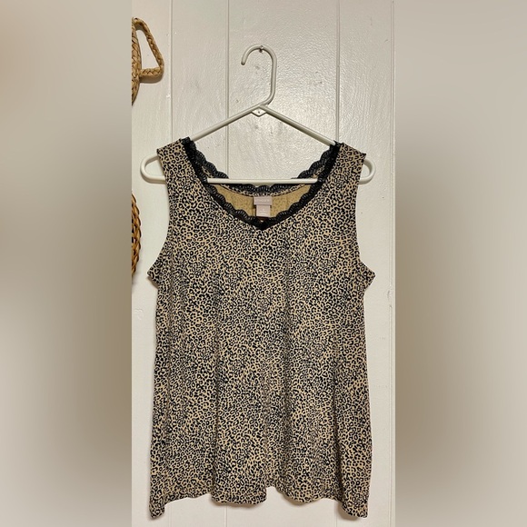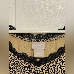 CHICOS L 2 ANIMAL LEOPARD PRINT LACE V NECK TANK TOP RAYON SPANDEX