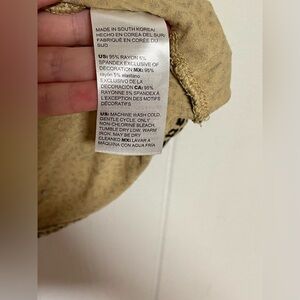16. Neutral Tan background with Black Animal Print. Black Lace around V Neck. Double Stitching.