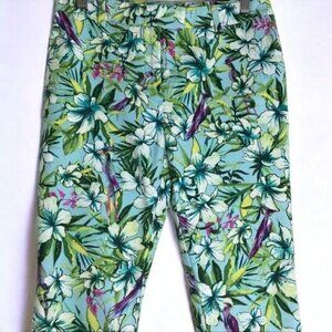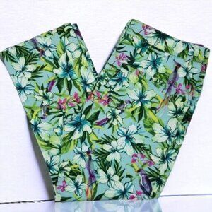 CHICOS LADIES GREEN COLORFUL TROPICAL HAWAIIAN BEACH MID RISE PANTS SIZE 4