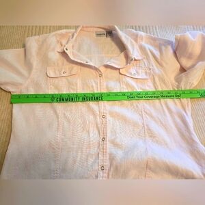 Stylish light pink button-up shirt with front pockets. Perfect for casual wear. Gently Used. Great Condition! (A91)