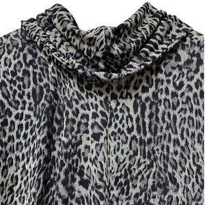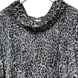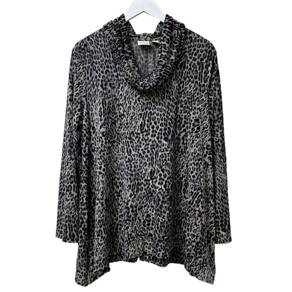 CHICOS Leopard Top Medium (Chico's 1) Cowl Neck Jersey Gray Black Long Sleeve